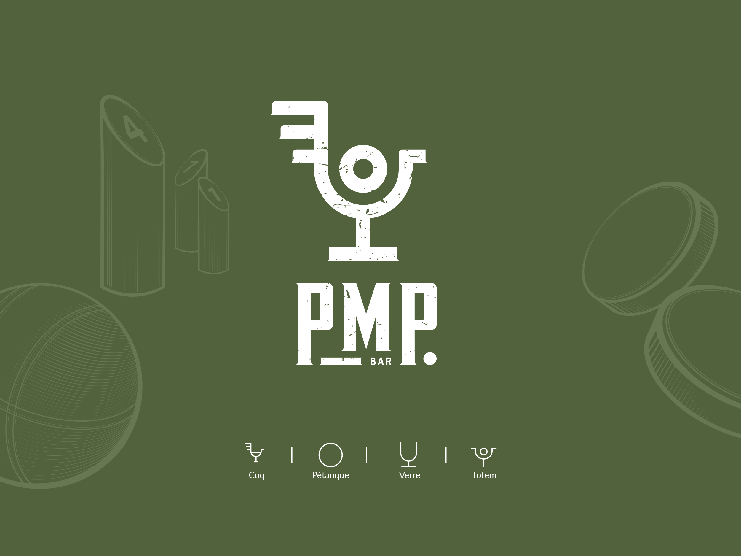 Roland et David nous ont sollicité pour définir l’identité visuelle de leur concept : un bar au sein duquel il est possible de jouer à la pétanque, au mölkky ou bien encore au palet. Leur nom, qui reprend les initiales de ces trois disciplines, était déjà défini : PMP.