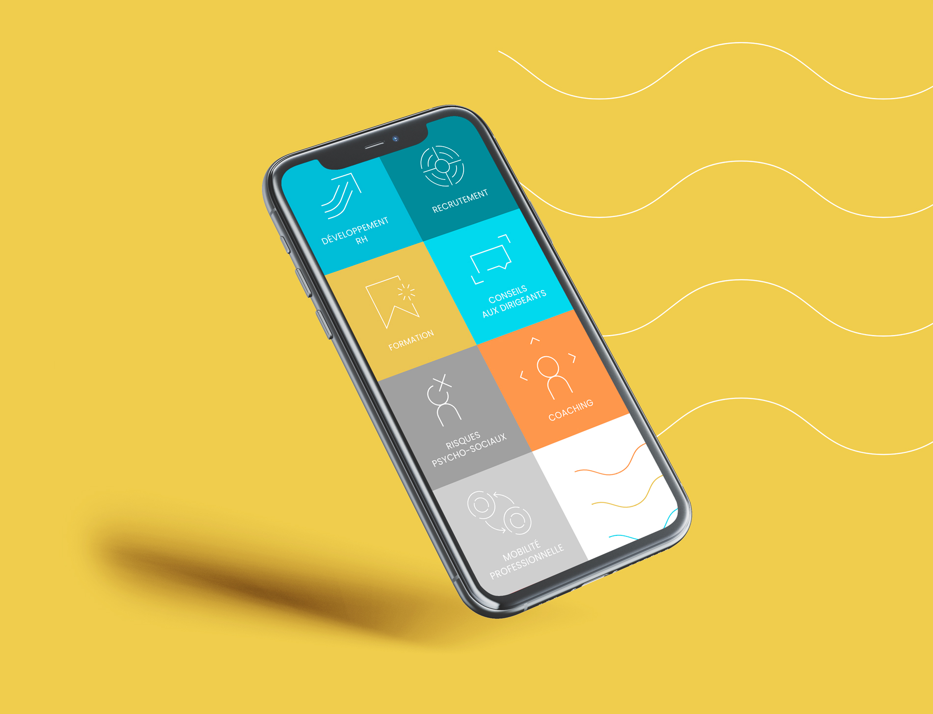 Le cabinet Vertical RH accompagne les entreprises dans leur projet de recrutement, de management et de motivation. Notre agence a accompagné ce cabinet pour définir un territoire graphique qui correspond au plus près de l’ADN Vertical RH. Nous avons ainsi créer un jeu de pictogrammes au style résolument moderne pour illustrer leurs valeurs ainsi que leurs prestations. Chaque prestation endosse une gamme couleur qui permet une meilleure clarté de l’offre sur leurs supports papier et digitaux.
