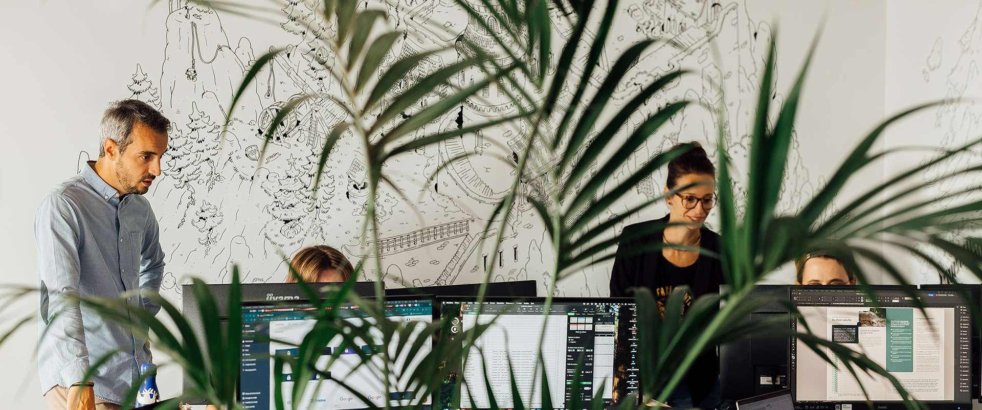 Afin de permettre aux équipes de WeFit.club de se projeter sur les différentes pistes proposées, Camille, graphiste-illustratrice chez Welko, a réalisé des crayonnés, c’est-à-dire des versions simplifiées en dessin des futurs visuels promotionnels.